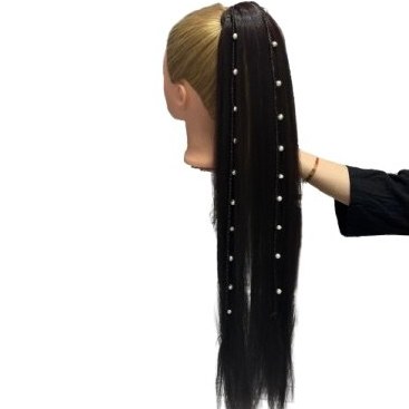 اکستنشن دم اسبی رنگ قهوهای تیره N3 با ریسه مرواریدی | کد: ZNB-WCJ پروتز مو