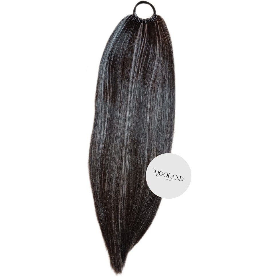 اکستنشن مو زنانه مدل دم اسبی هایلایت سفید-مشکی | کد: ZNB-UB1 پروتز مو