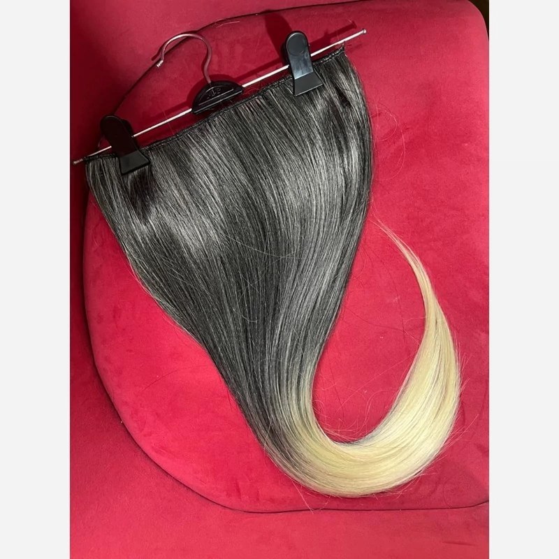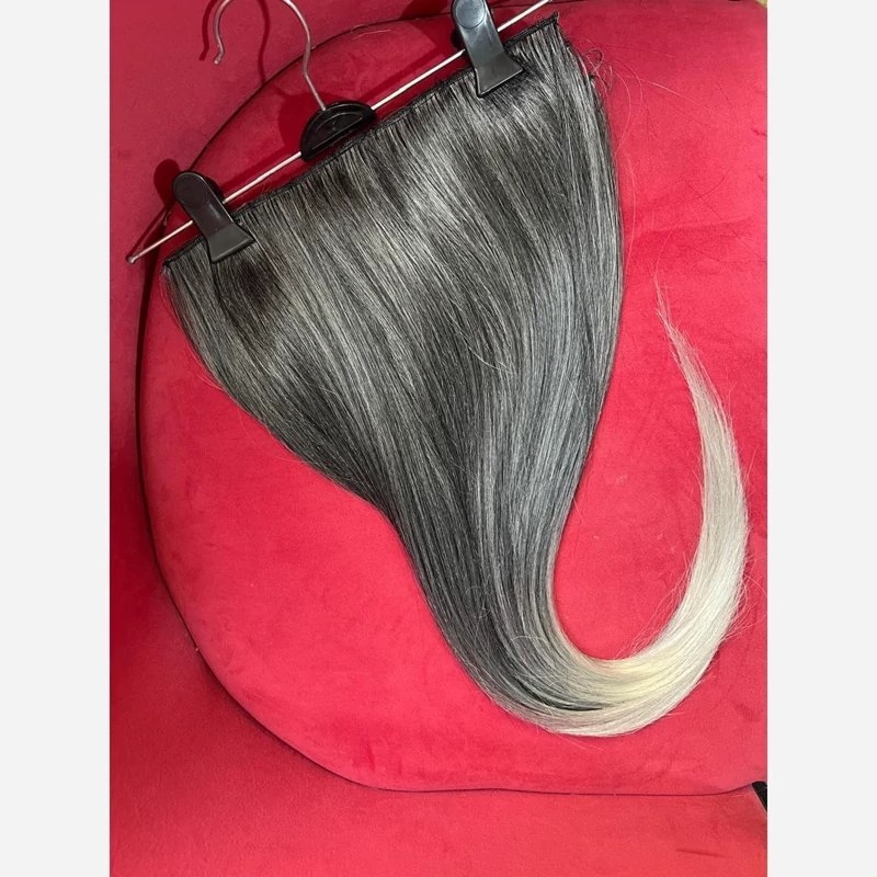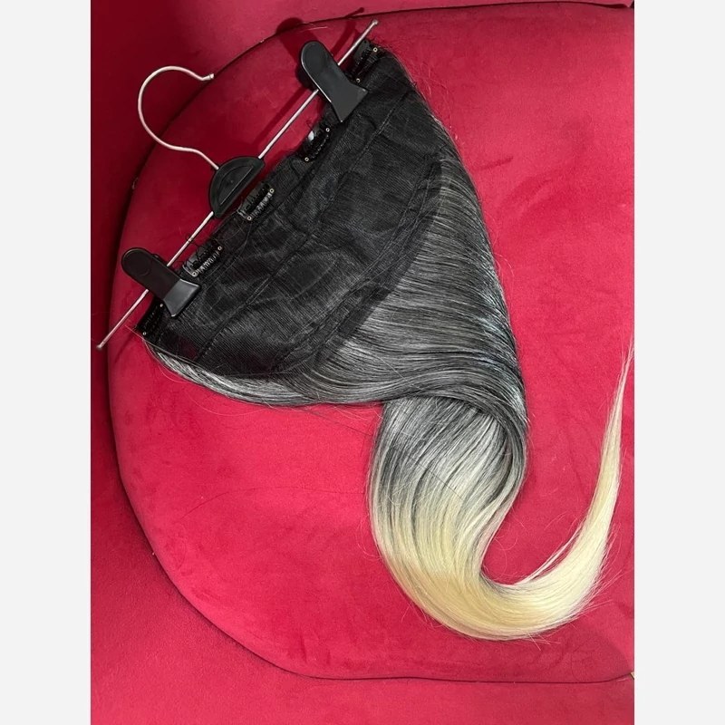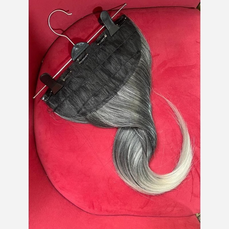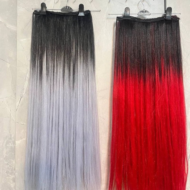 اکستنشن مو گیره دار رنگ آمبره – آمبره مشکی طوسی آبی۸۵ سانت | کد: ZNB-X8V پروتز مو