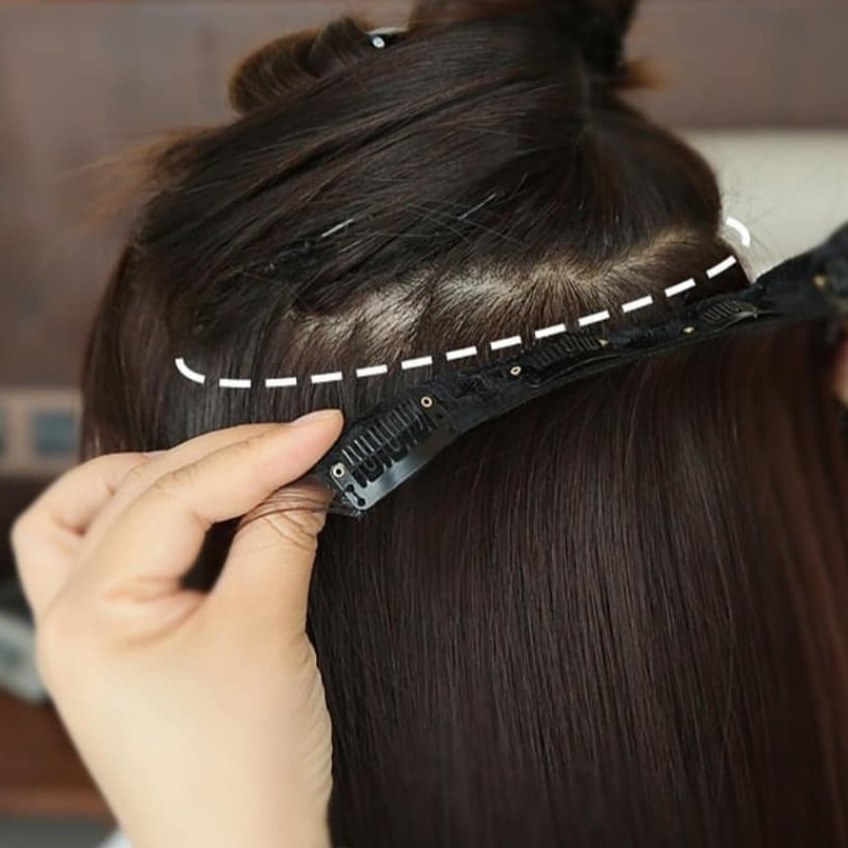 اکستنشن گیره ای ابریشمی قد ۶۰ مدل هفت گیره رنگ امبره | کد: ZNB-U5J پروتز مو