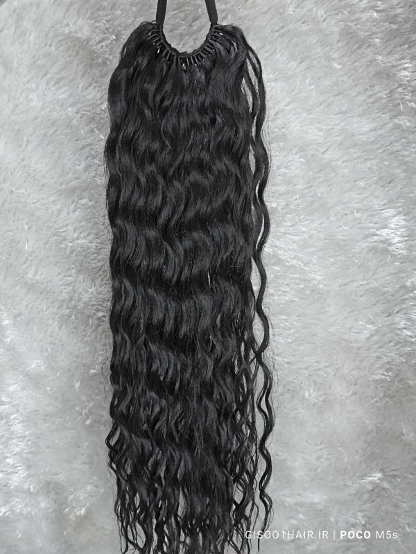 موی دم اسبی فر افرو رنگ مشکی طبیعی رو به مشکی | کد: ZNB-V8O پروتز مو