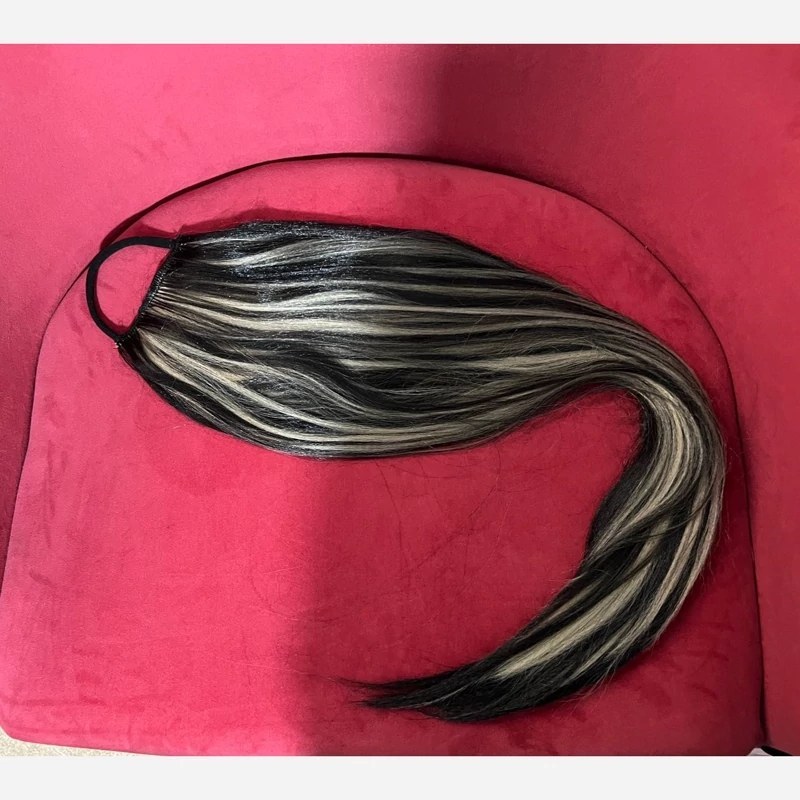 موی دم اسبی کشی قد 70 سانت تک رنگ آمبره و لایت – قهوه ای تیره | کد: ZNB-XFT پروتز مو