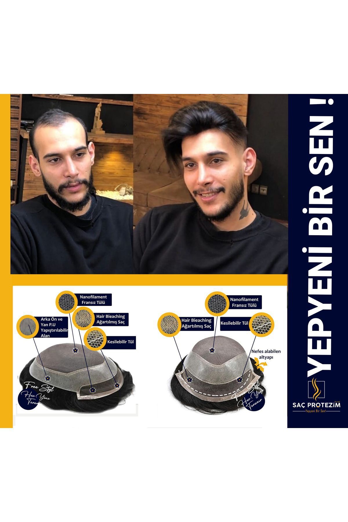 پروتز قابلیت ایجاد مدلهای کلاسیک، مدرن یا طبیعی را دارد و با انواع آرایش مو مردانه هماهنگ میشود.