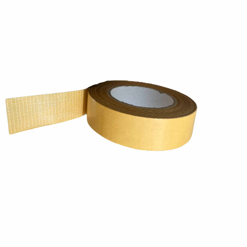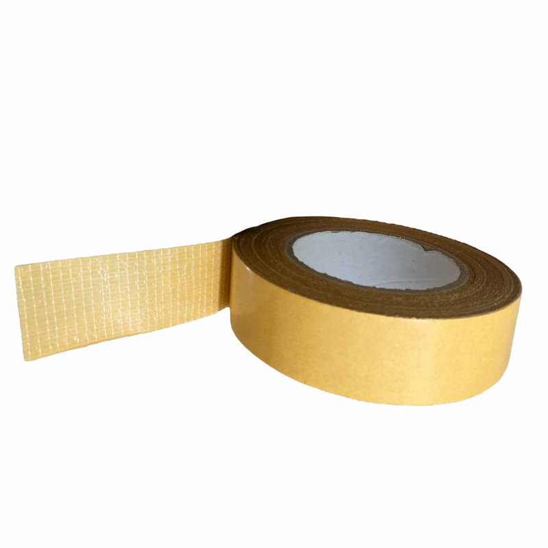 چسب دوطرفه نخ دار با بافت نخی بسیار ریز ساخت ایتالیاو با کیفیت بسیار بالا از مزایای این محصول میتوان به متراژ بسیار بالا و قیمت مقرون به صرفه آن در مقایسه بامقدارش اشاره نمود.عرض چسب حدودا سه سانتی متر میباشد.ووزن هر نوار حدودا 240 گرم هست. چسب دوطرفه الیاف دار از نوع چسب های دوطرفه ی پوسته نازک می باشد ، رنگ آن تقریبا شفاف بوده جنس آن از پارچه تقویت شده با الیاف تار و پودی پلی استر می باشد و از کیفیت بسیار بسیار بسیار بالایی برخوردار است . چسب دوطرفه نخ دار و یا به اصطلاح چسب دوطرفه مسلح که به چسب کلاه گیس نیز معروف است از بافت تاروپودی تشکیل شده است. این بافت تار و پودی بر روی فیلم شفاف 100 میکرونی لمینت شده است و ترکیبی فوق العاده از نر چسبندگی استحکام و انعطاف پذیری تشکیل داده است. جهت چسباندن پلی اتیلن جهت چسباندن OPP جهت چسباندن پارچه جهت چسباندن الیاف جهت چسباندن عایق های حرارتی و برودتی جهت چسباندن فوم های حرارتی و برودتی جهت چسباندن فوم های پلی اتیلن،PE، EVA همچنین از این چسب می توان جهت چسباندن کلاه گیس ،عایق های الاستومری ، کاغذ، مقوا، پارچه، پلاستیک، بنر و … به سطوح مختلف از جمله فلز ، سنگ ، سرامیک و … استفاده نمود.