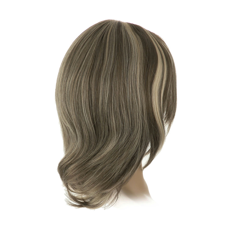 رنگ این کلاهگیس ترکیبی از زیتونی روشن با هایلایتهای بلوند تیره است که جلوهای مدرن و بُعددار به آن میبخشد.