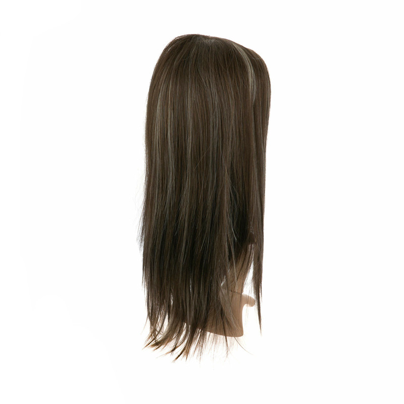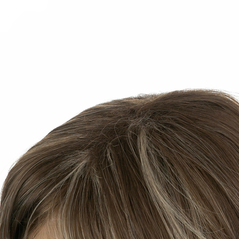 رنگ این کلاه‌گیس ترکیبی از قهوه‌ای خاکی با هایلایت‌های بلوند روشن است که جلوه‌ای مدرن و طبیعی با عمق بصری به موها می‌بخشد.