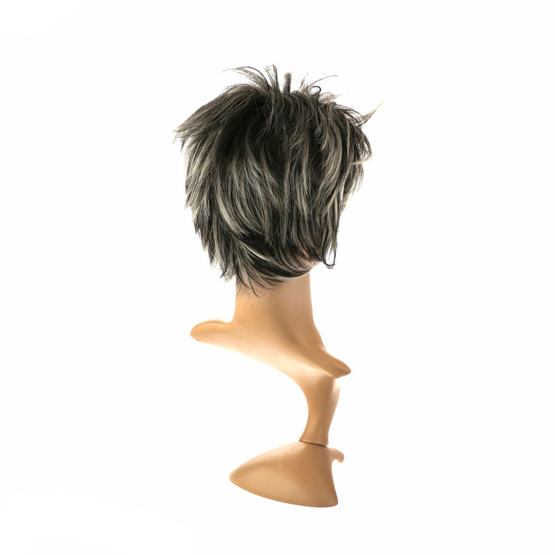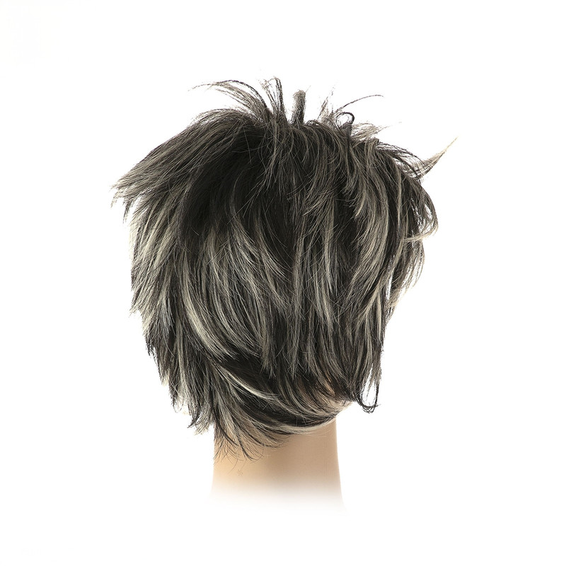 رنگ این کلاه‌گیس مشکی با هایلایت‌های بلوند روشن است که کنتراستی جذاب و جلوه‌ای مدرن و چشم‌گیر به موها می‌بخشد.