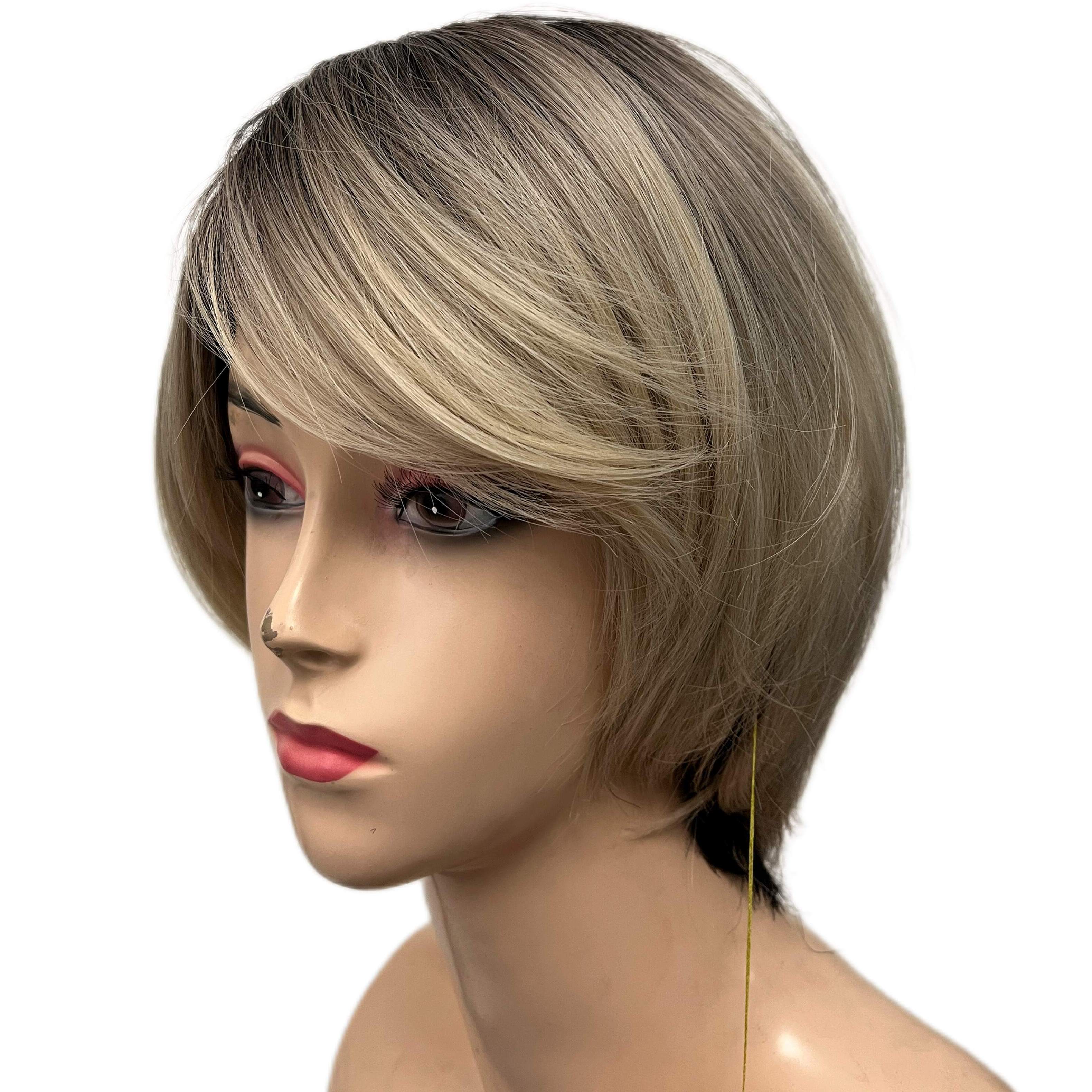 کلاه گیس زنانه کوتاه آمبره بلوند و مشکی طبیعی | کد: ZNB-UVU